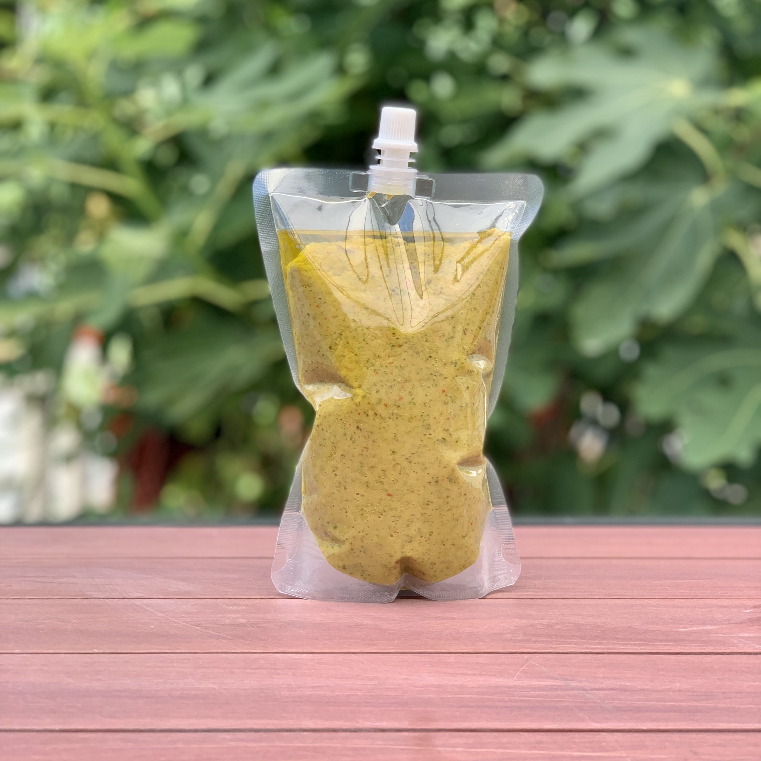 Ingredients : Persil, coriandre, basilic, thym, ail, oignon, poivron, jus de citron, moutarde et huile d’olive