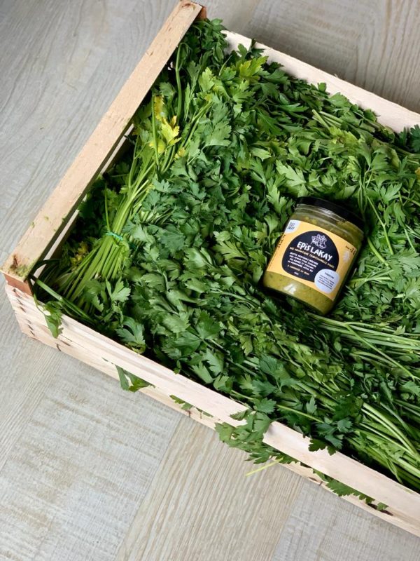 Ingredients : Persil, coriandre, basilic, thym, ail, oignon, poivron, jus de citron, moutarde et huile d’olive
