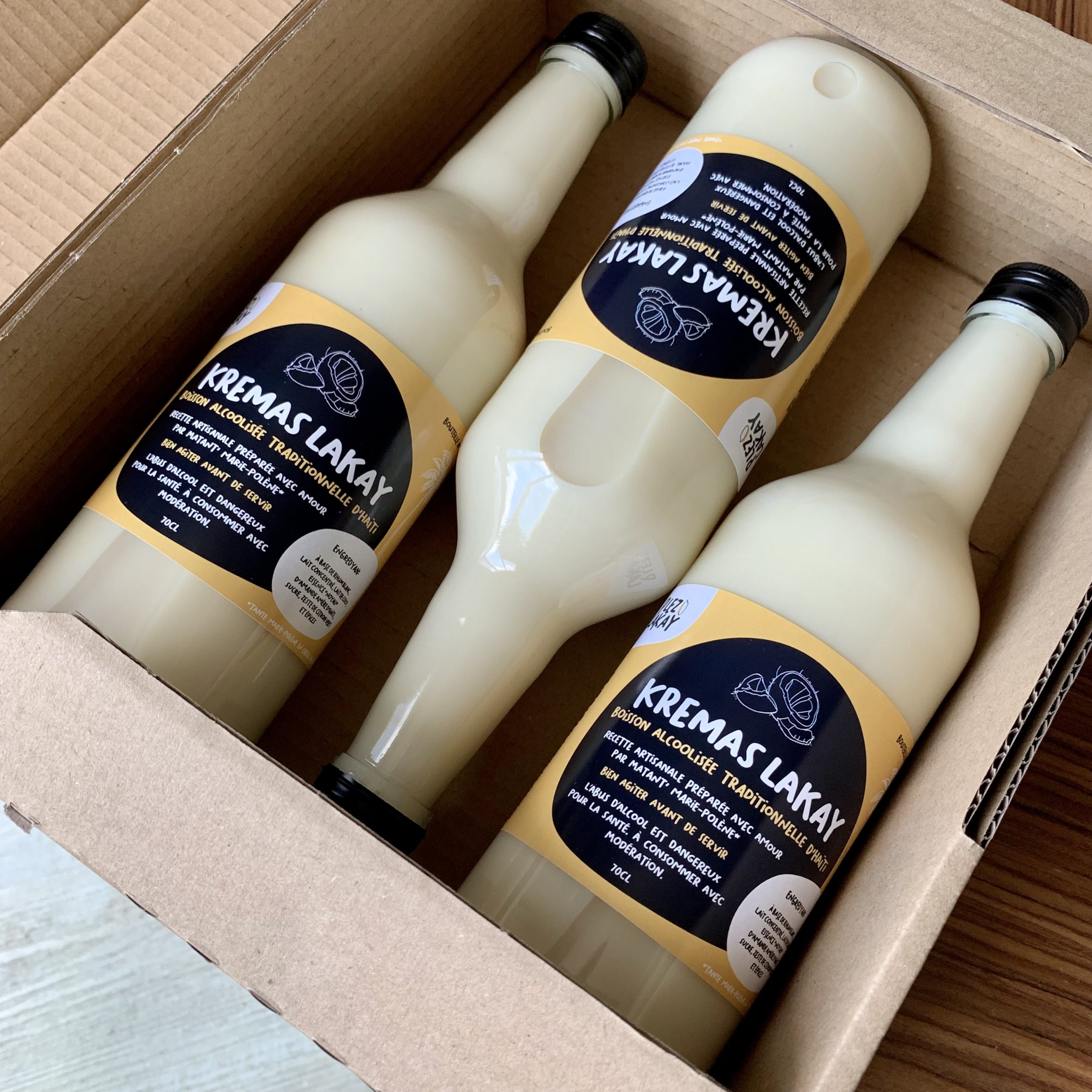 Ingredients : Rhum blanc, lait de coco, lait concentré, essence “noyau” d’amande amère d’Haïti, sucre, zeste de citron vert, cannelle, anis étoilé et muscade.